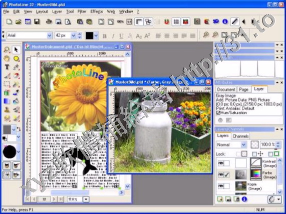 具有專業水準的圖形處理軟體,Photo Line支援Layer,並且也內建許多現成的濾鏡和特效功