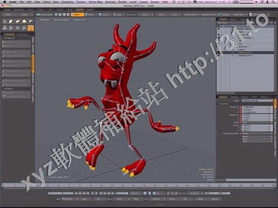 Modo提供了一系列的動畫角色功能,從方便使用的工具到清晰的角色裝備,都可以通過逆向運動